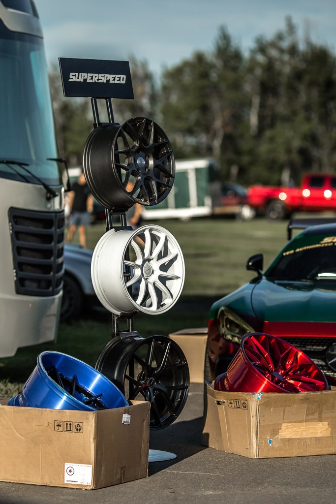Vendors were out selling their swag and showcasing some of their offerings including this display of wheels.