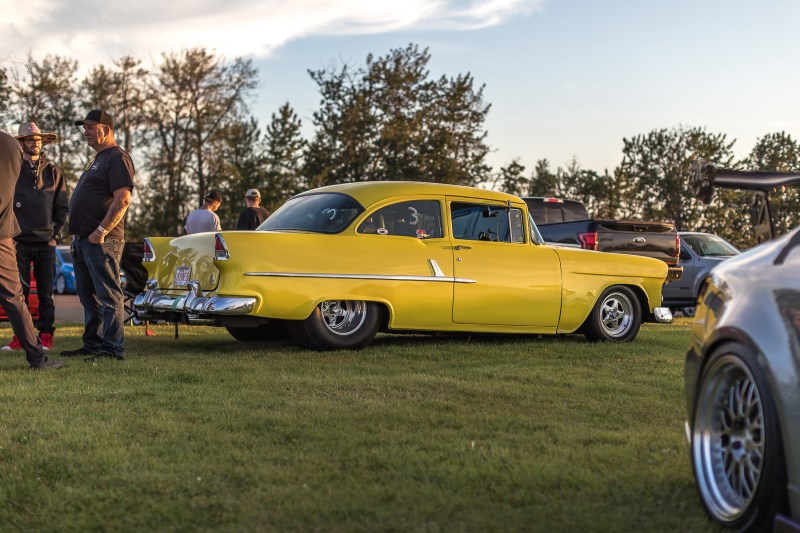 Another race ready 2 door Chevy ended up parking between all of the imports lined up on each side of the roads. Classic metal, especially heavily modified, earned a spot on my memory card. I think this owner is part of the Edmonton Street Rod club and may have ties with Hooptie Life.