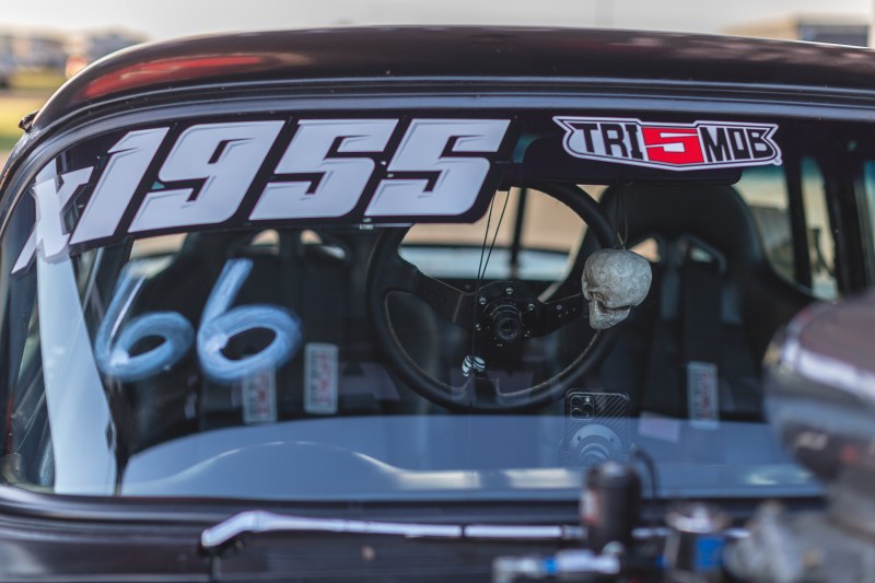 The Blacklist Speed Shop 55 Chevy certainly stood out from the crowd equipped with race slicks, a blower, and a skull hanging in the windshield. Lining up to race, the driver sported some skeleton gloves waiting for his next victim on the drag strip.