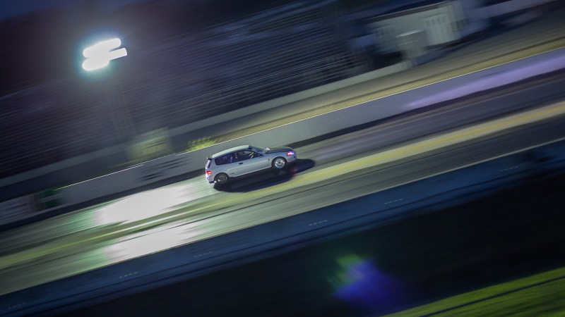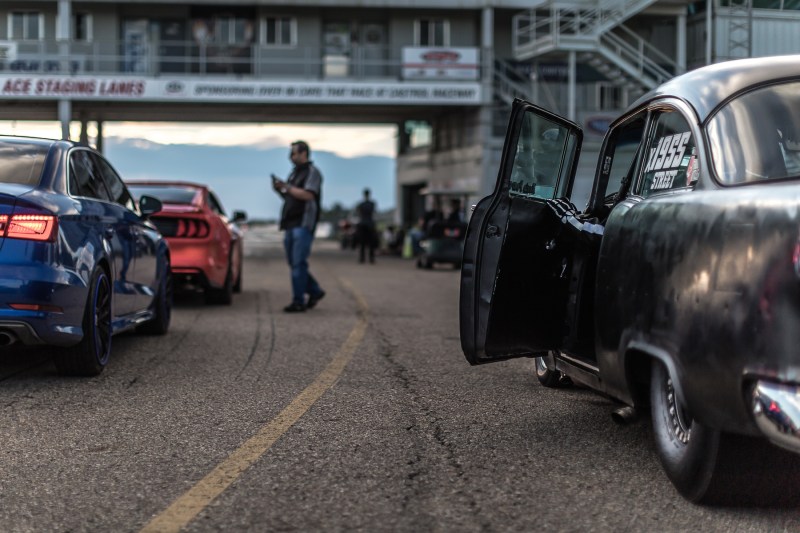 While the sounds from the drag strip echoed in the air, participants started up their cars from the show area and got in line to test their times. The diversity of the vehicles was apparent as a heavily modified 55 Belair lined up alongside some newer American Muscle cars. A classic white EG civic sporting a shop decal I remembered from the early 2000’s (Zippy’s Auto) took it’s spot on the scorched asphalt and rocketed down the track. This gave me an opportunity to get back into practice with some panning shots. As the sun began to set, the racers continued to pair up and try to top their previous times, while taking on some friendly competition.