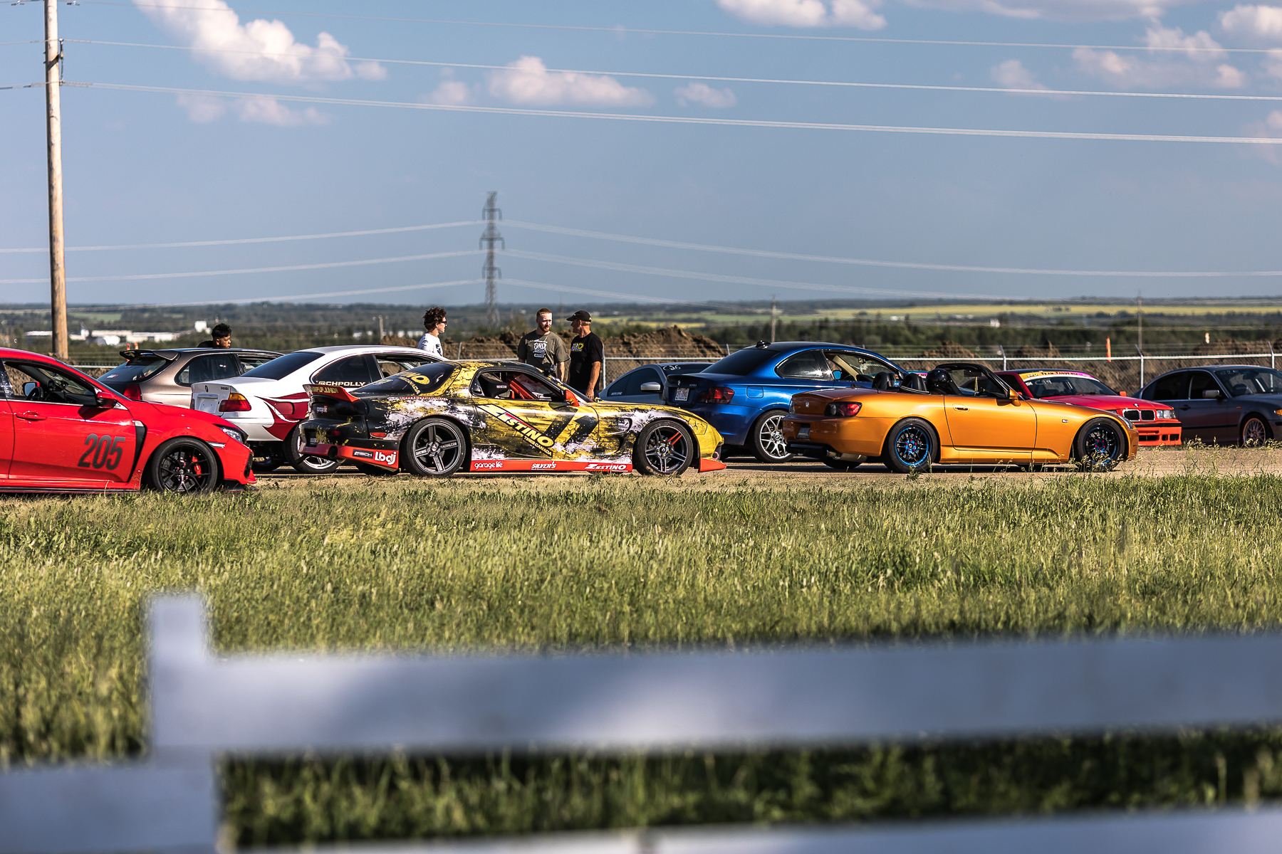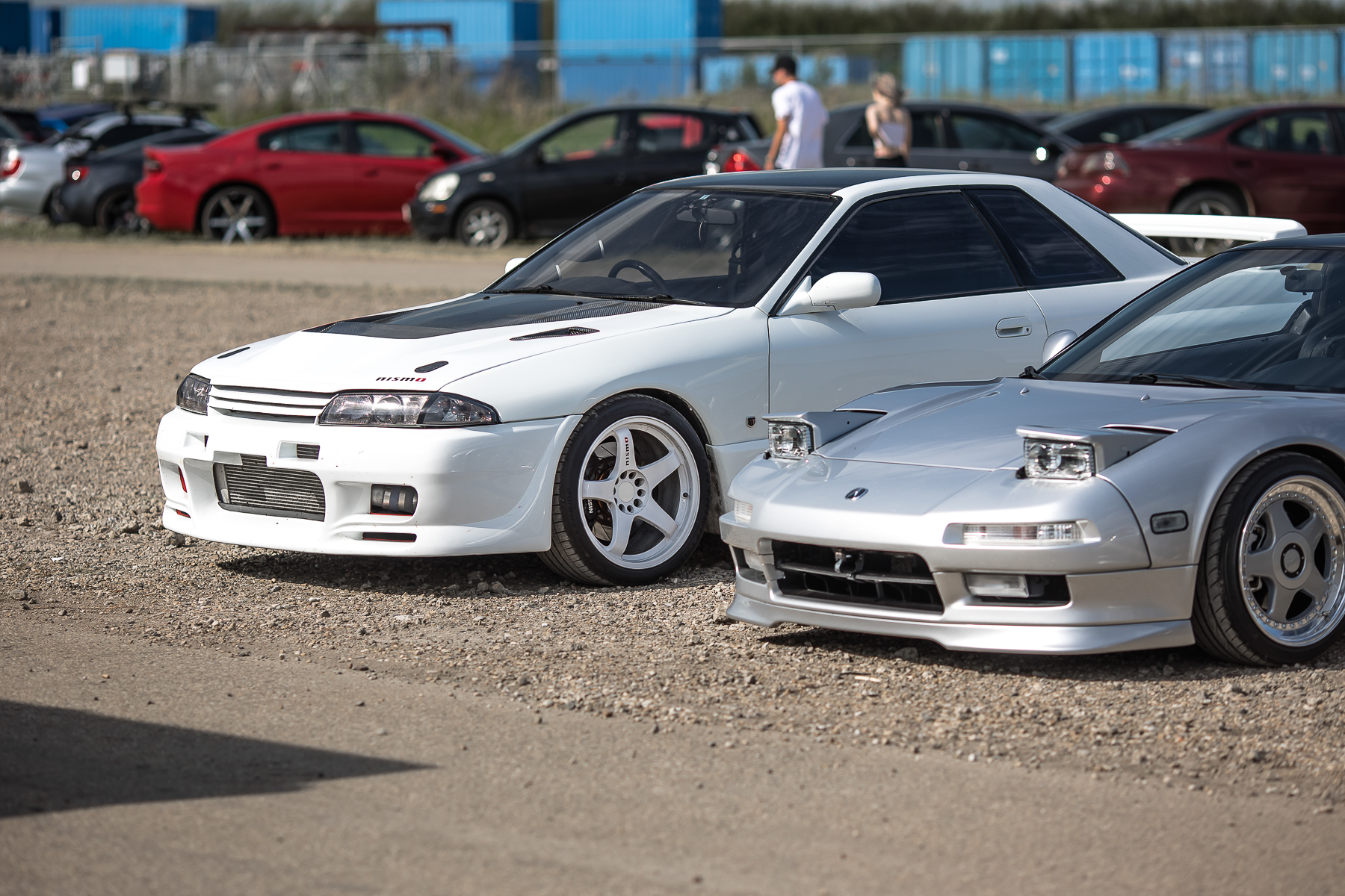 It was a hot July summer day and after giving my car a rinse after the long drive from Cold Lake, I rolled out from Fort Saskatchewan and headed out of town towards the reopened Stratotech raceway. Road construction greeted me as I turned off of the main highway and from a distance you could hear the sounds of exhaust mixed with screeching tires and loud music courtesy of the DJ. I must say that I was not expecting the road transition into the raceway to be so abrupt and as I angled my NSX slowly over the what seemed to be certain bumper scraping doom, I actually made it with only a small sound of paint transitioning to gravel. (The dreaded departure was not as smooth). Of course, I was late to the party but there was still a steady flow of vehicles arriving to take their places at the designated parking spots.