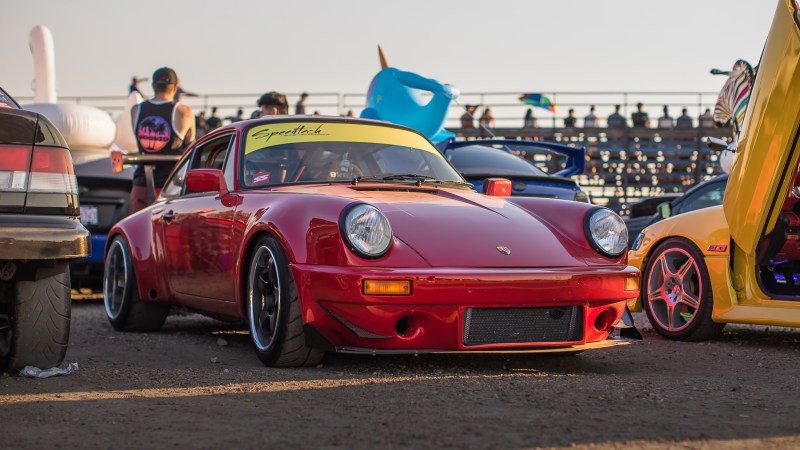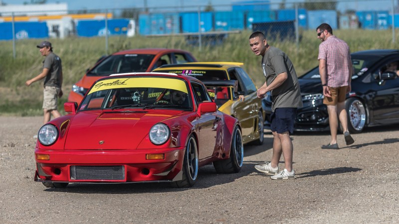 Perhaps it was the location with the dirt parking area, the variety of modified vehicles rolling in, and the close proximity of the track that had me thinking of the classic film from 2001. “Racewars” was what came to mind when I originally saw the red 911 first driving in at the gate as the dust blew in the air . Walking around, you could see participant’s tents setup on the gravel with spare sets of tires propped up, lawn chairs, and even one crew brought out inflatables for their display. For such a large area, it was packed with rows upon rows of vehicles ranging from a new Porsche GT3rs, to a classic Volkswagen Scirocco.
