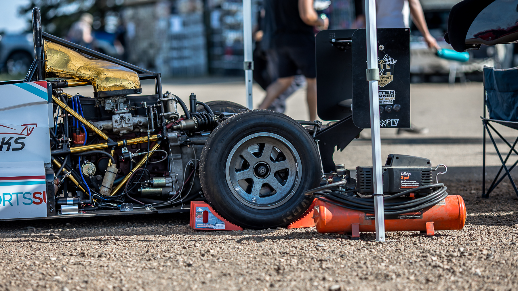 The bleachers were filled with both young and old as the competitors lined up for their opportunity to set their personal best times for the afternoon. Kei cars, Euro cars, heavily modified JDM cars and several D Spec cars were competing to beat their friendly rivals and also compete against the clock. In close proximity to the track, 2 open wheeled race cars were setup for everyone to view. Decals from Speed Freaks and Motorsports Supplies accented the one that would later partake in the limbo contest. While road faring cars that are modified for the track take on their own persona, a stand alone race car always has a presence of it’s own.