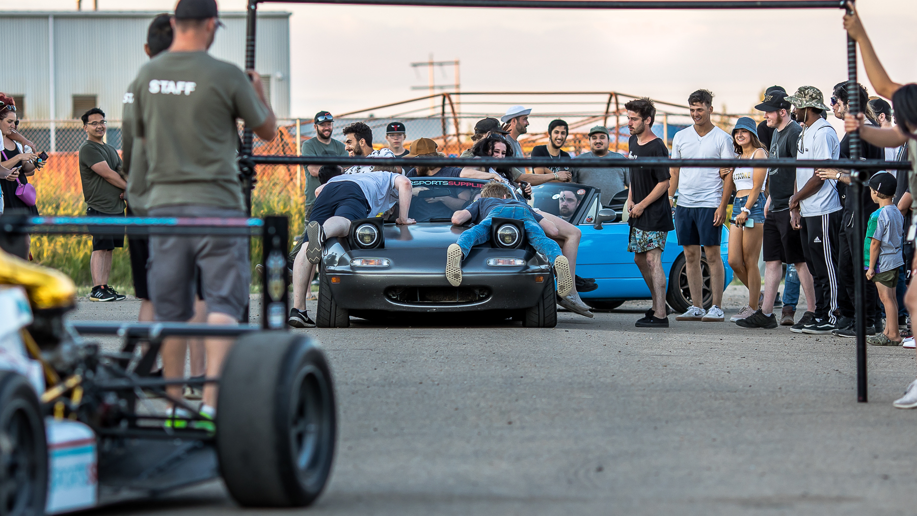 The races were finishing up and the crowds now migrated over to the food trucks area where the bar was raised and the Miatas started to line up. I always get a kick out of this portion that I first experienced at Tunerbash and the limbo contest was starting to begin. I would assume there are no rules when it comes to this contest as long as the vehicle can move on it’s own. Clearly, the amount of people on the car had no minimum as friends took the opportunity to pile on the trunks and hoods of the cars as they slowly creeped under the padded limbo bar. Even the Speed Freaks race car enjoyed in the fun and made it close to the final round. The thought crossed my mind to hop into the NSX and give it a go but next time perhaps…