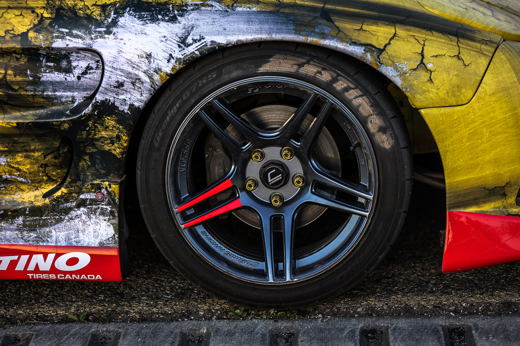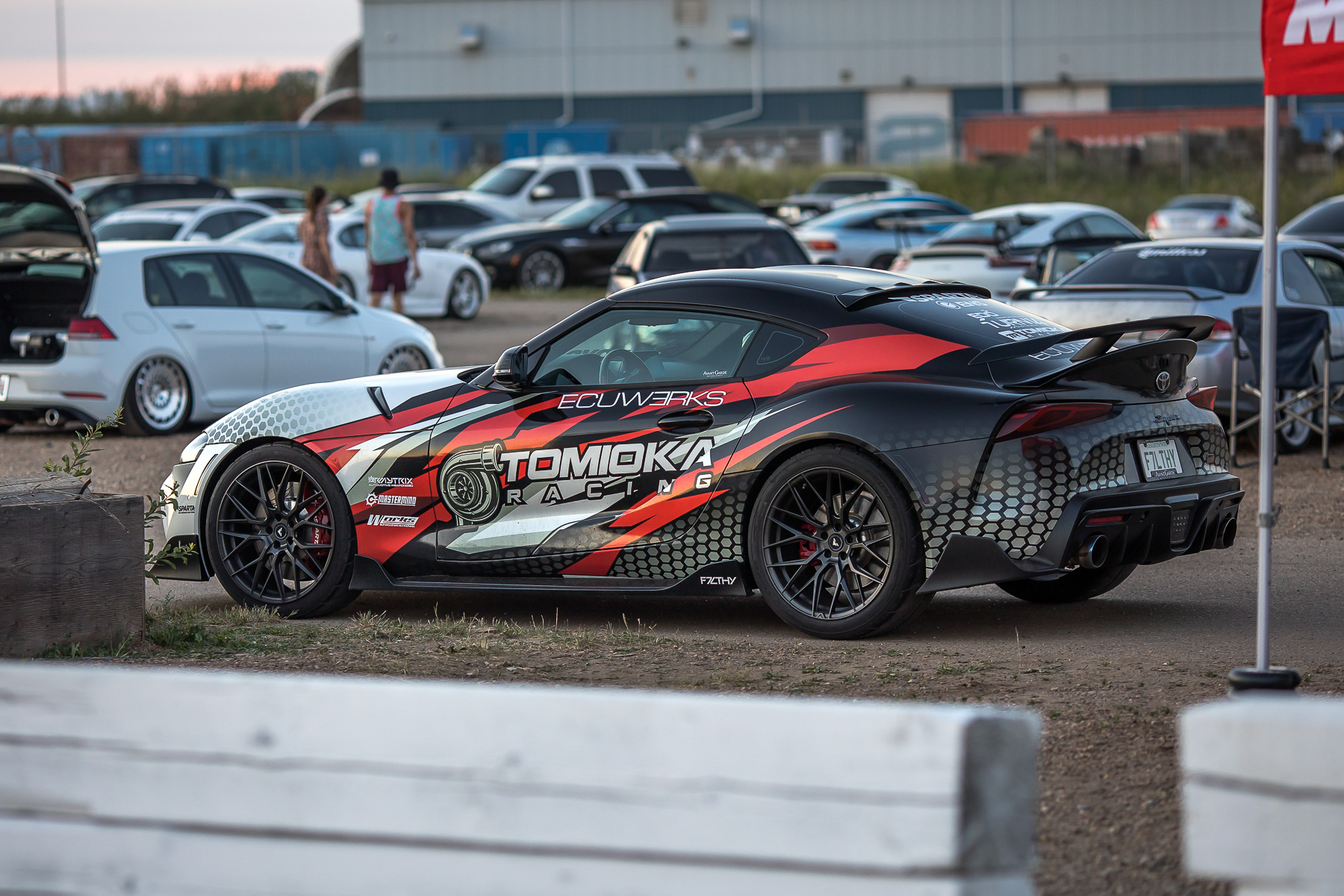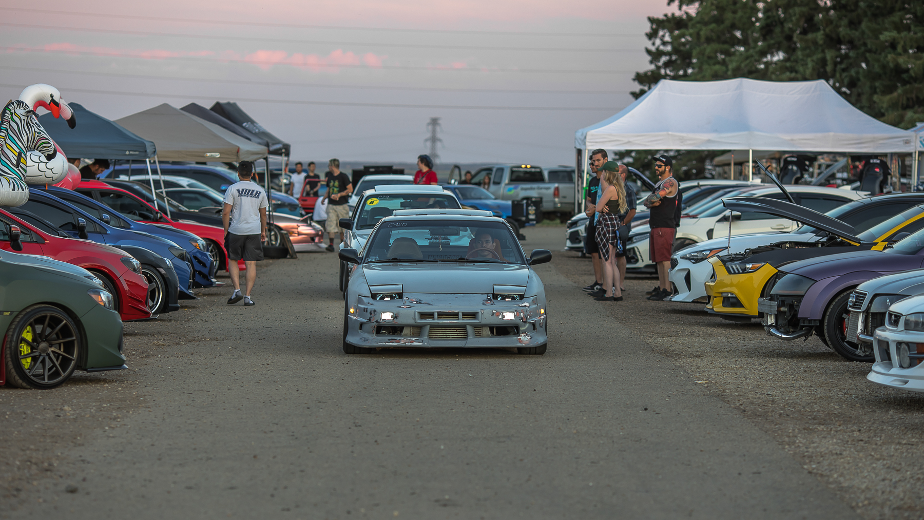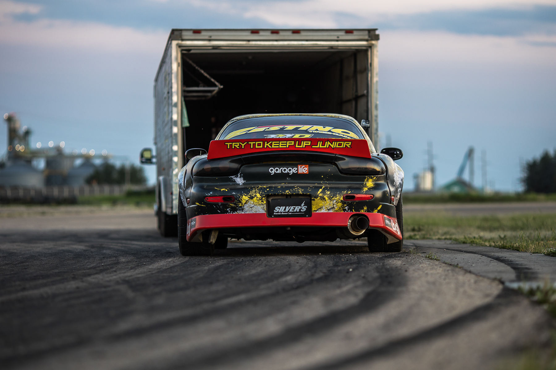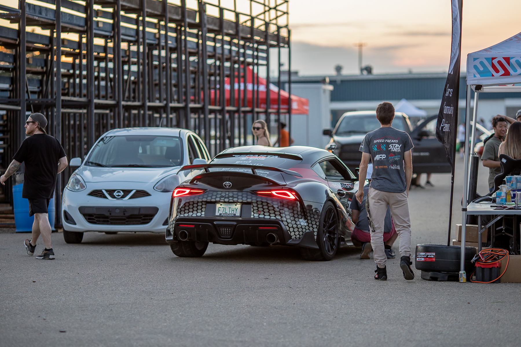 As the sun was beginning to set and cars were lining up for the limbo contest, this Spec D Rx7 was getting loaded up onto the trailer after a grueling day of scorching the asphalt. Drift competitors always liven the crowd and with Zestino assisting with sponsoring the tires for this Mazda, the driver was happy to oblige.