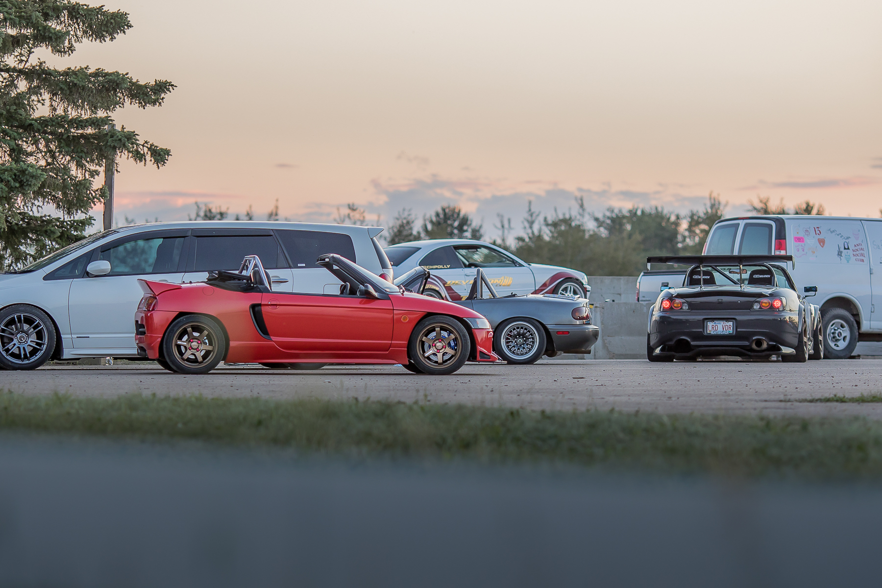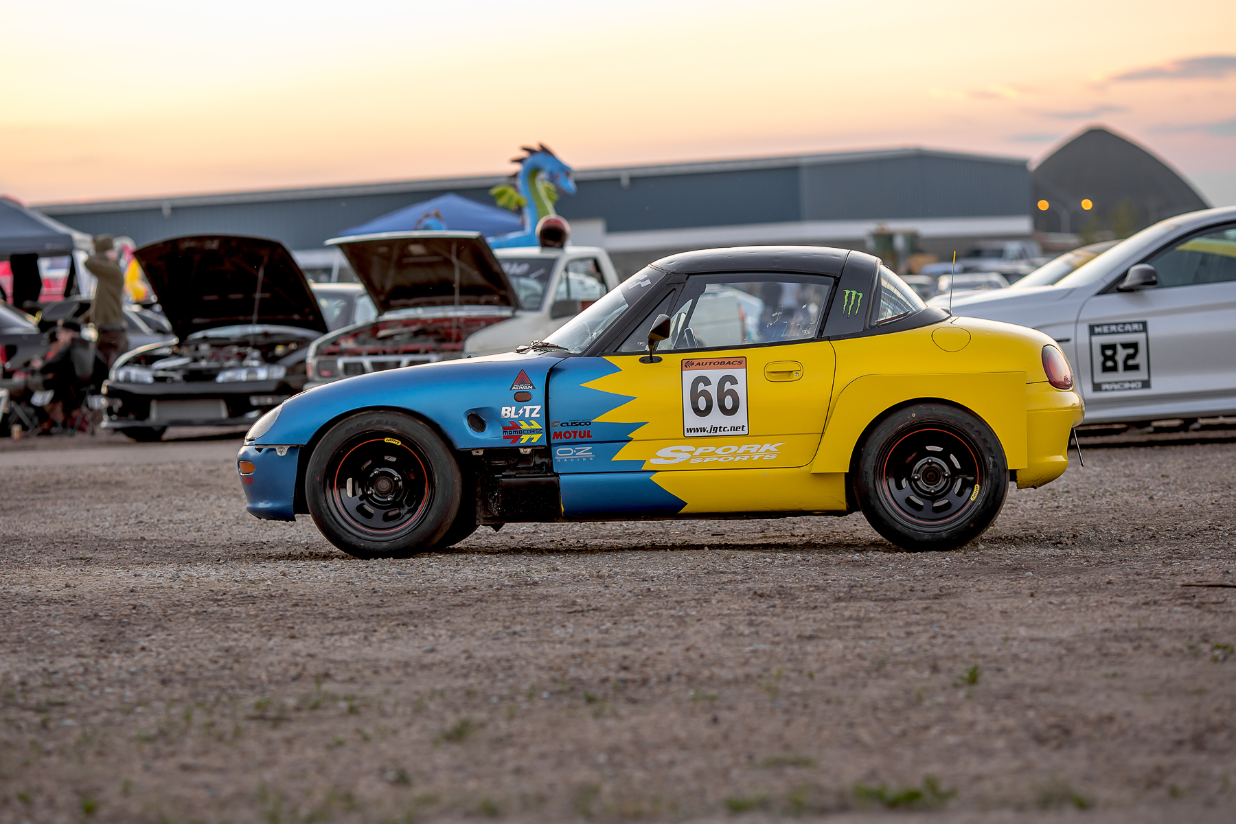 More track action continued as a Suzuki Cappuccino took the opportunity to take it’s turn. Parked with the sun setting made the Spoon inspired livery (Spork Sports) pop and it looked even better in the corners.