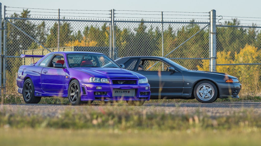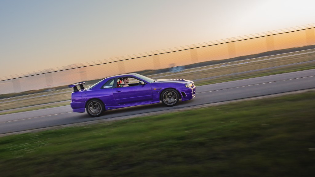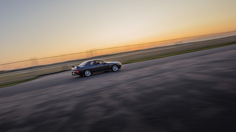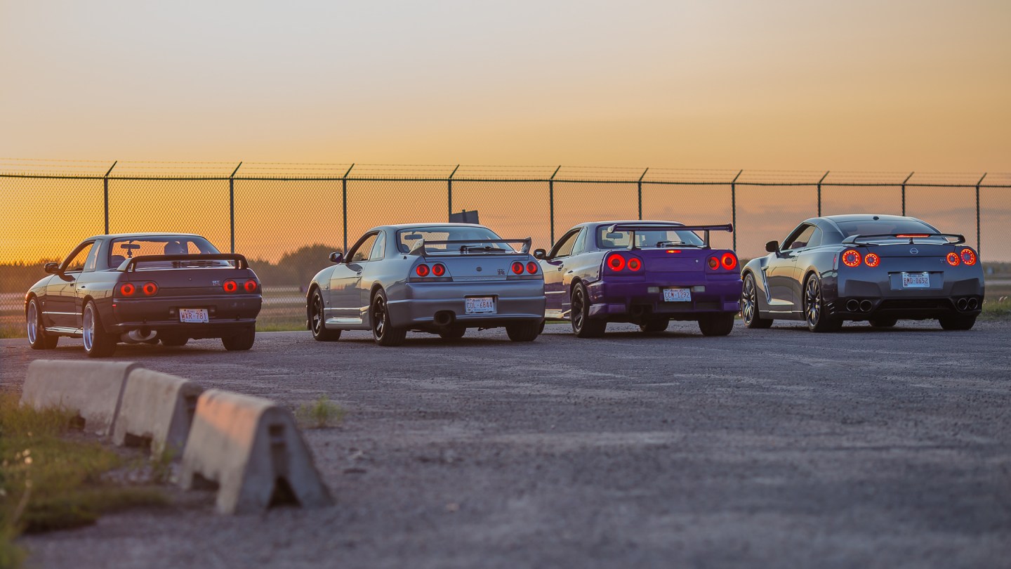 While each generation looks different, the dual rear tail lights help to identify them as a Nissan Skyline. Under the hoods of the R32 and R33, they both shared the same RB26DETT motor set that were modified to their liking for power with the R34 using an RB25DET for a powerplant. As the night wound down, the owners lined up for one last shot with all four lined up for a classic sunset capture and some panning to show them in motion.
